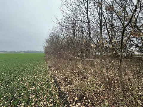 Левое поле за костелом в Тяжилове. Рядом коммуникации.