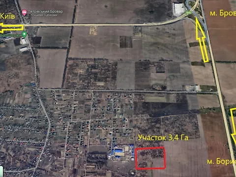 С. Княжичі, Броварський район, Броварська окружна траса. Продам ділянку 340 соток під бізнес, комерцію, під житлову забудову. За генпланом с. Княжичі, житлова забудова, газова труба біля ділянки. Терміновий продаж! Низька ціна - 1000 $/сотка.