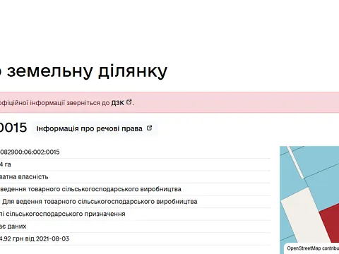 Тип нерухомості: Земля сільськогосподарського призначення