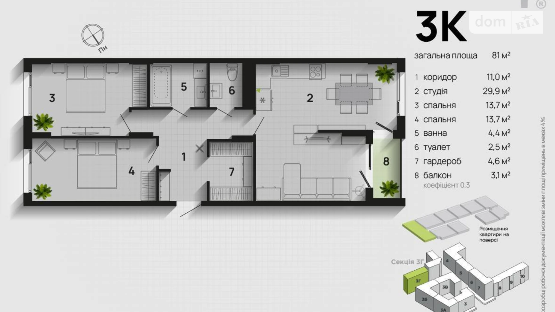 3 комнаты