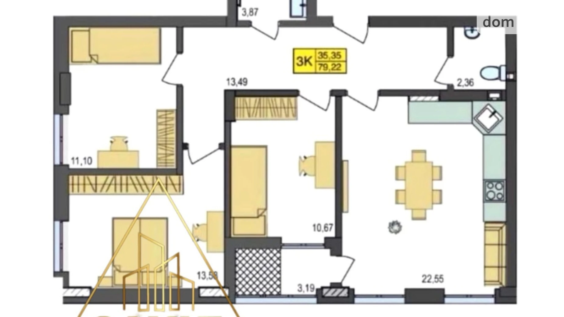 3 комнаты