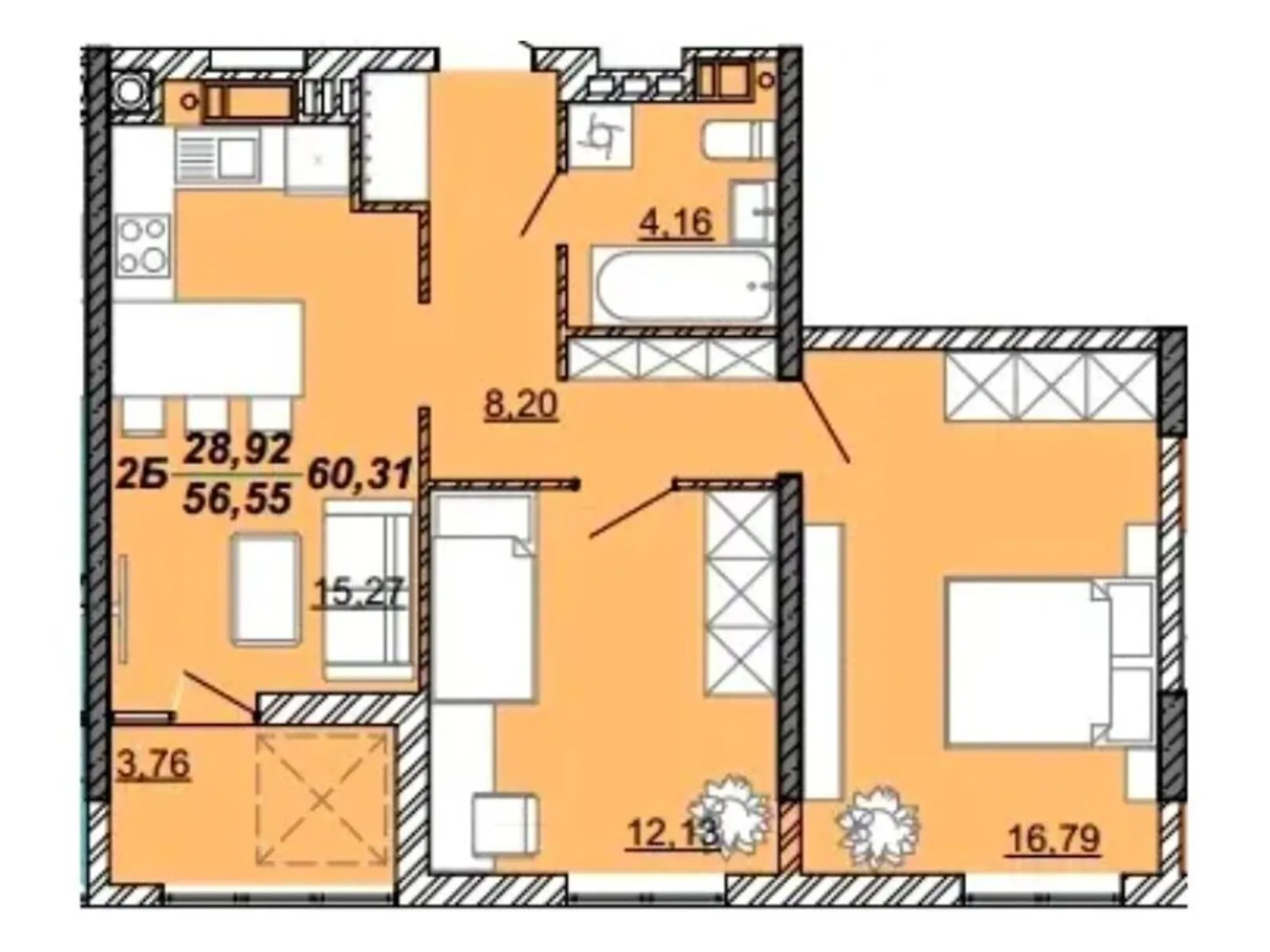 60.8 м²