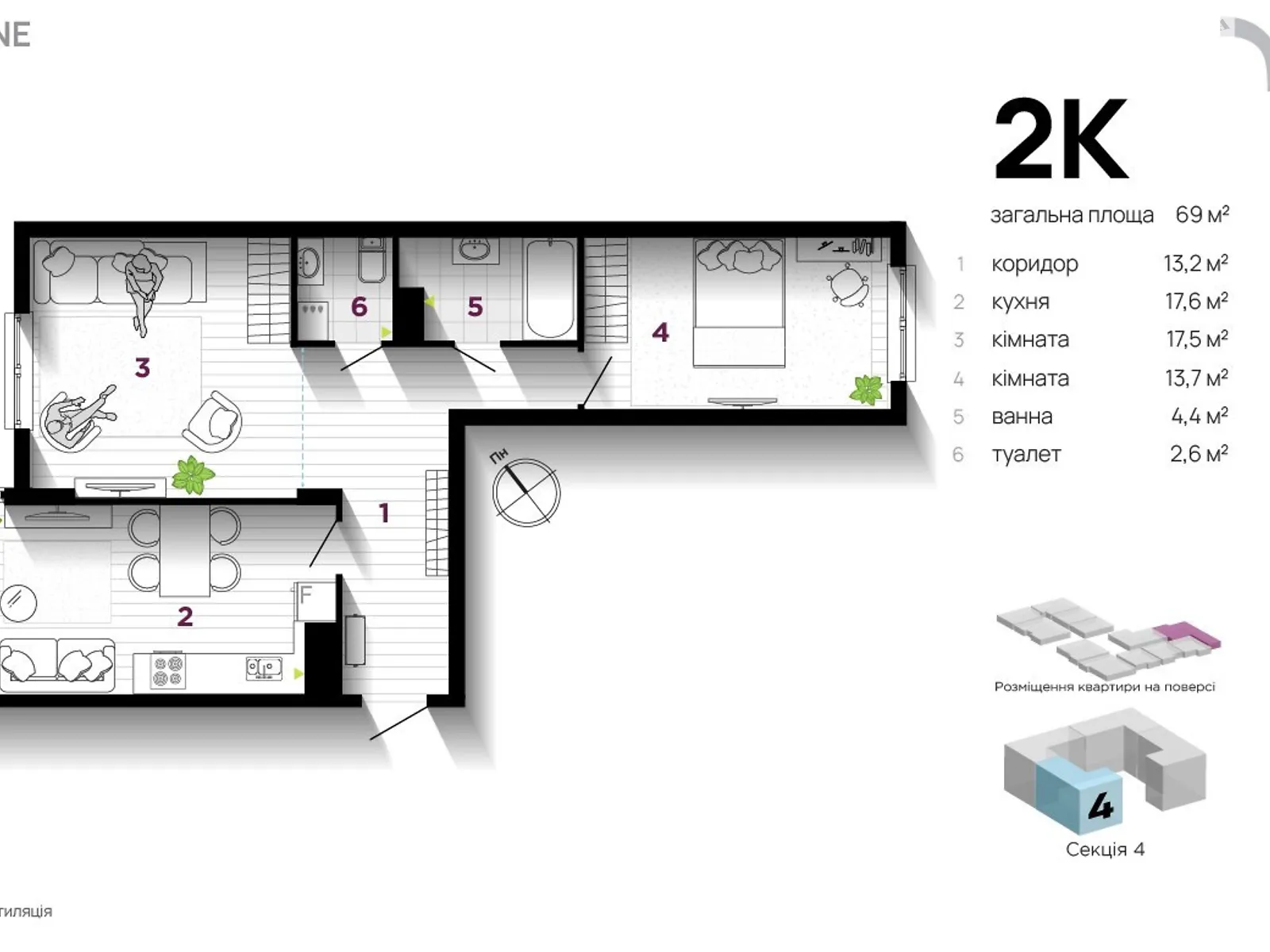 2 комнаты