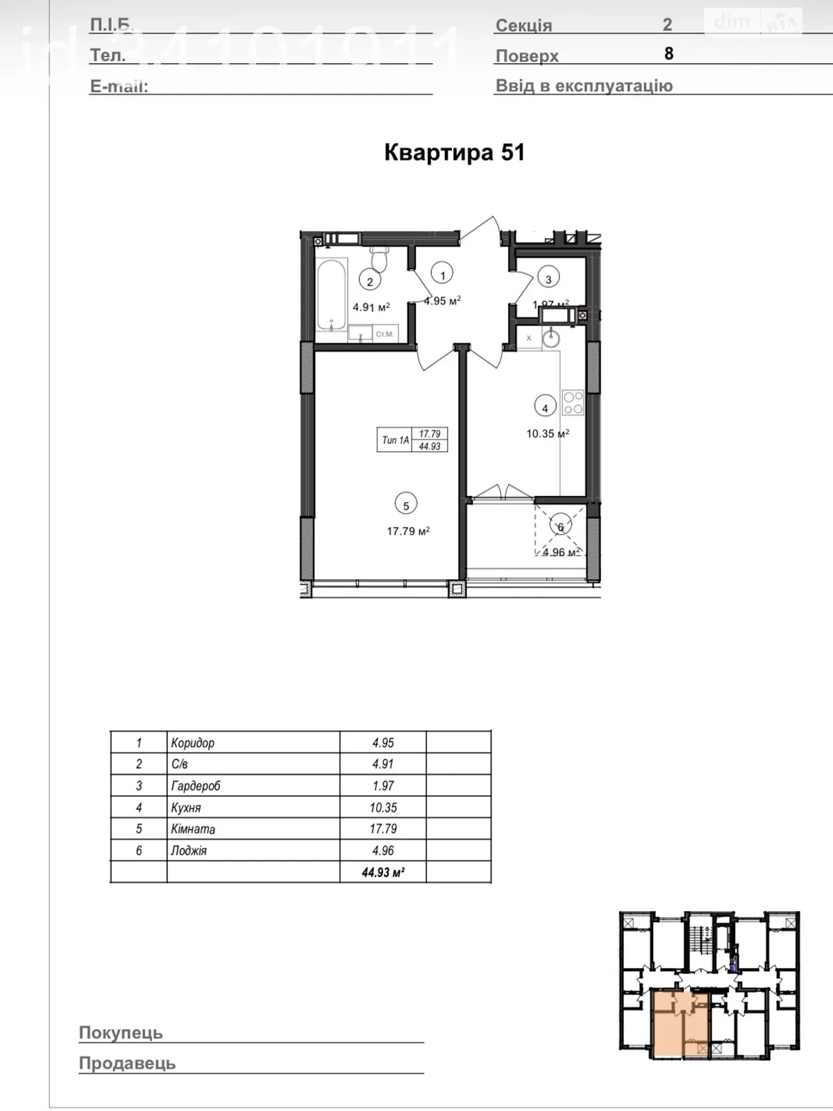 44.93 м²