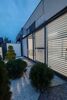 - Закрытая терраса под стеклянной крышей и деревянными жалюзи.