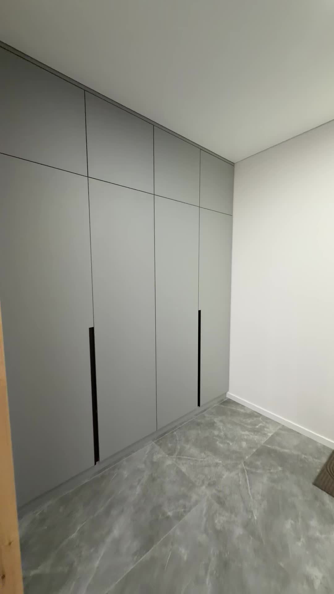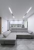 Интерьер выполнен в современном минимализме: светлые тона, декоративные панели, скрытые двери, световые линии, премиальная плитка и качественные материалы.