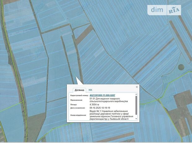 - Продажа права аренды (годовой арендной платы) земельного участка сельскохозяйственного назначения, площадью 4,3504 га, кадастровый номер: 4623381000:11:000:0287, расположенный по адресу: Львовская область, Львовский район, за пределами населенного пункта с. Боршов, категория земель – земли сельскохозяйственного назначения, целевое назначение – для ведения товарного сельскохозяйственного производства (КВЦПЗ – 01.01).