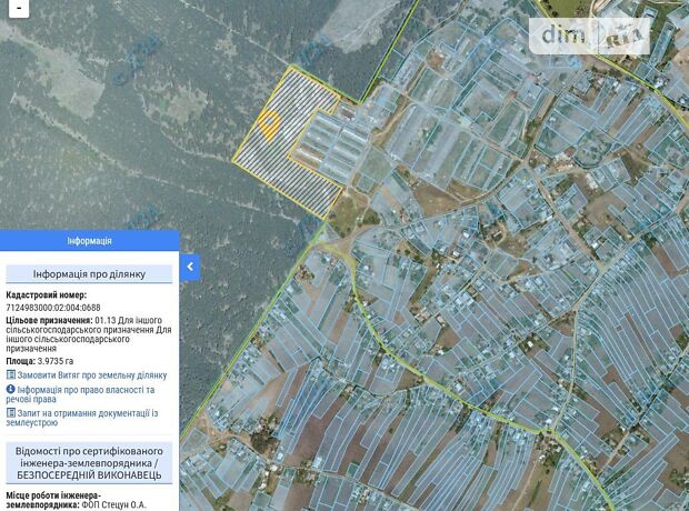 - Продажа права аренды земельного участка сельскохозяйственного назначения площадью 3,9735 га с кадастровым номером 7124983000:02:004:0688, расположенного за пределами с. Дубиевка Черкасского района Черкасской области для иного сельскохозяйственного назначения (01.13)