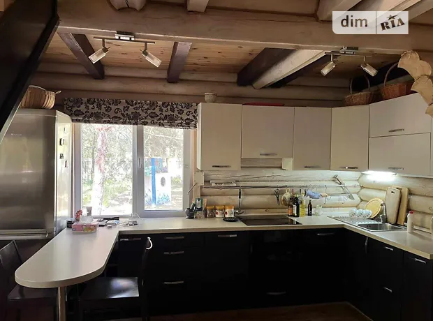 Дом сруб (сосна) общая площадь 120 кв.м, экологичный двухэтажный дом построен с применением актуальных технологий обеспечения автономной жизнедеятельности загородного дома, индивидуальный проект «второй свет». Дом расположен на участке 25 соток, который находится на территории дачного кооператива в лесной зоне. Река Ирпень 15 минут пешком.