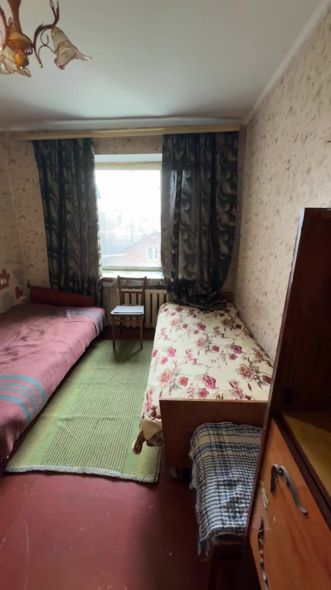 - Окрема кімната в гуртожитку , простий житловий стан , зручності та кухня на поверсі .Кімната тепла НЕ КУТОВА.Зручний район зупинка тролейбуса під будинком.Затишний двір.