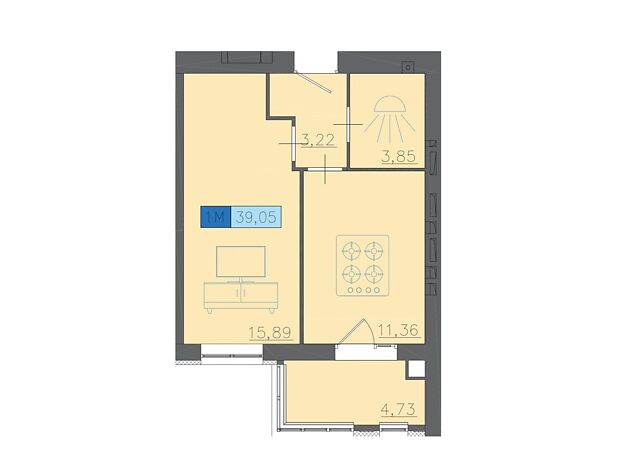 Площадь 39.05 м²