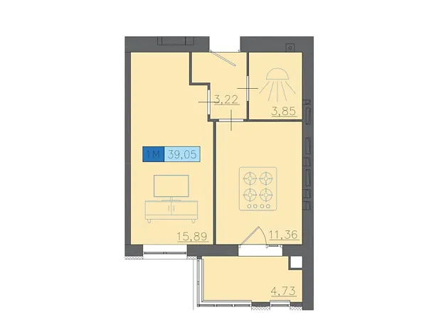 - Общая площадь 39.05 м²