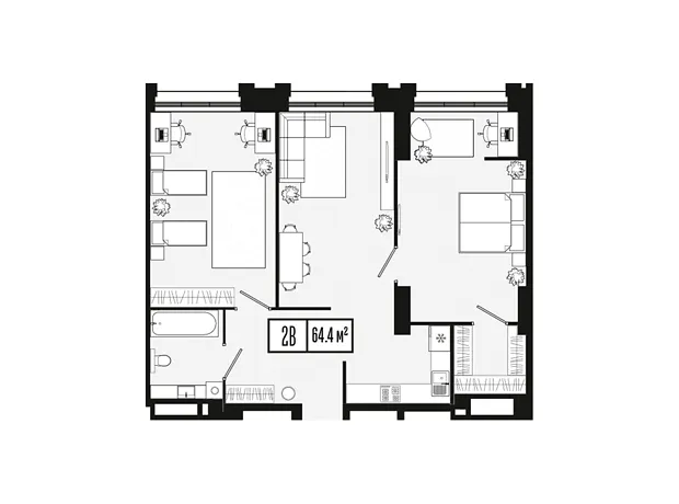- Общая площадь 64.4 м²