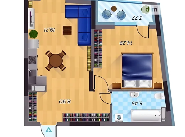 - Особенности планировки: кухня-студия