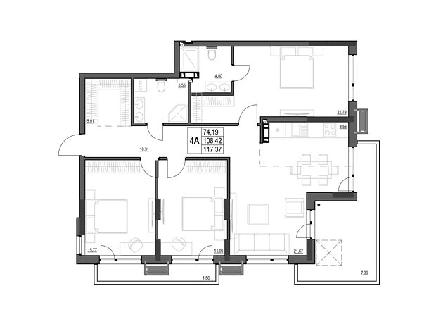 - Общая площадь 117.37 м²