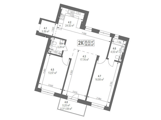 - Общая площадь 85.52 м²