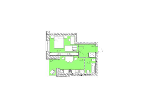 - Общая площадь 42.5 м²