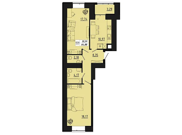 - Общая площадь 64.88 м²