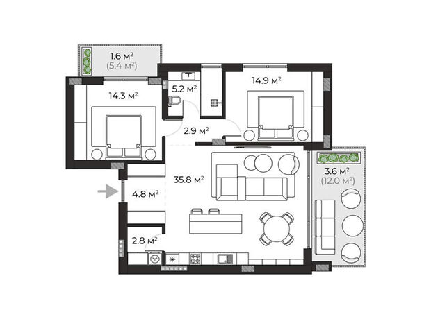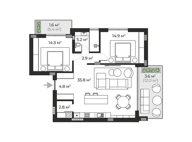 Площадь 85.9 м²