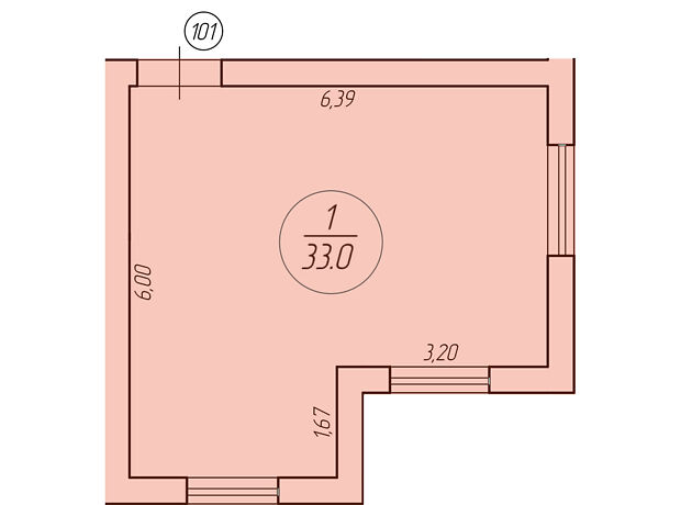 - Общая площадь 33 м²