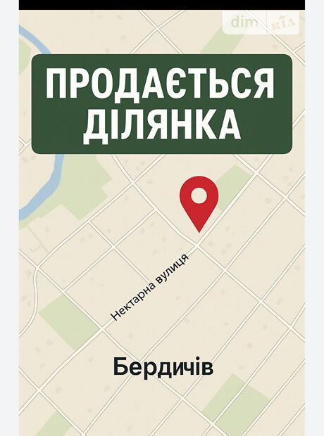 Участок находится в пределах города Бердичев, в спокойном и зеленом районе по ул. Нектарная. (Район Загребелля). Удобный подъезд, вокруг частная застройка. Рядом все коммуникации. Место идеальное для строительства собственного дома или инвестиции на будущее.