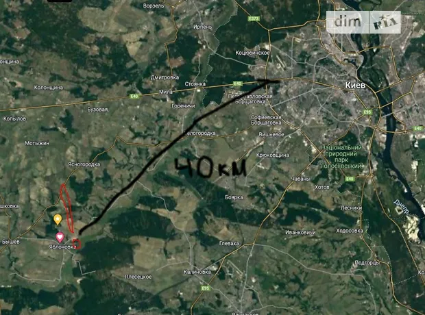 За адресою: Фастівський район, с. Леонівка. Поряд ліс, в кінці участків ставок. (можна зробити власну кладку).