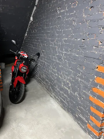 Паркоміце під мотоцикл, є місце для зберігання шолома і т.і., зручно розташоване.