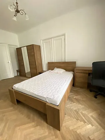 У кімнаті: двоспальне ліжко, велика шафа для зберігання речей, обладнане робоче місце. У вартість орендноі плати входять КП!