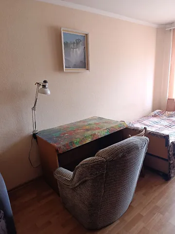 Гарний житловий стан, чиста охайна. Вікна поміняні. Меблі, техніка. Кімната маленька, закривається на ключ.
