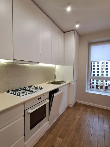З техніки: посудомийна машина, холодильник, варильна поверхня та витяжка, духова шафа, телевізор, пральна машина, кондиціонер