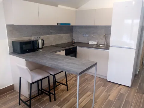 Повна комплектація всіма необхідними меблями та побутовою технікою такою як: пральна машина з функцією сушки, плита, духова шафа, холодильник, бойлер.