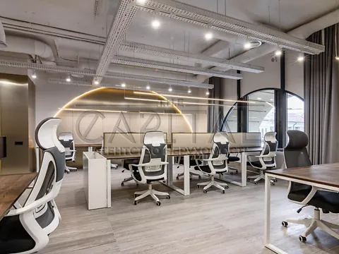 Офіс має сучасний дизайнерський ремонт. Великі вікна та високі стелі роблять приміщення світлим і просторим, а сучасні меблі та обладнання забезпечують зручність та ефективність робочого процесу.