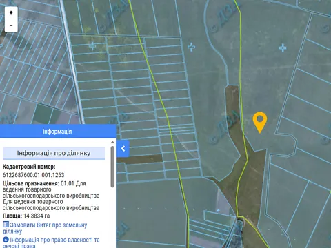 земельна ділянка для ведення товарного сільськогосподарського виробництва площею 0,9888 га. кадастровий номер 6122687600:01:001:1268