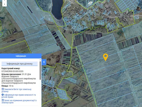 Продаж права оренди земельної ділянки сільськогосподарського призначення, площею 19.0000 га, кадастровий номер 0723682800:03:003:0205 , яка розташована на території Прилісненської сільської ради, Камінь-Каширського району, Волинської області, категорія земель – землі сільськогосподарського призначення, вид цільового призначення – для ведення товарного сільськогосподарського виробництва .