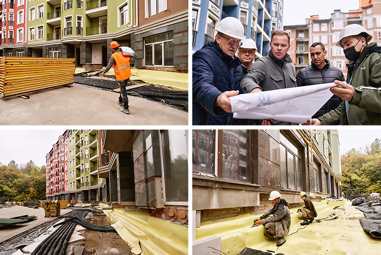 Будівництво об’єктів «Укрбуду» – особлива частина роботи будівельників. У житловому комплексі «Гвардейський» триває облаштування вентильованого фасаду. Встановлюють вікна, залишилось приблизно 25%. Будівельники виконують електричні роботи, облаштовують проводку по стоякам. А також облаштовують розводку опалення й води. Щодо будівництва паркінга, виконується армування плити ростверка.
