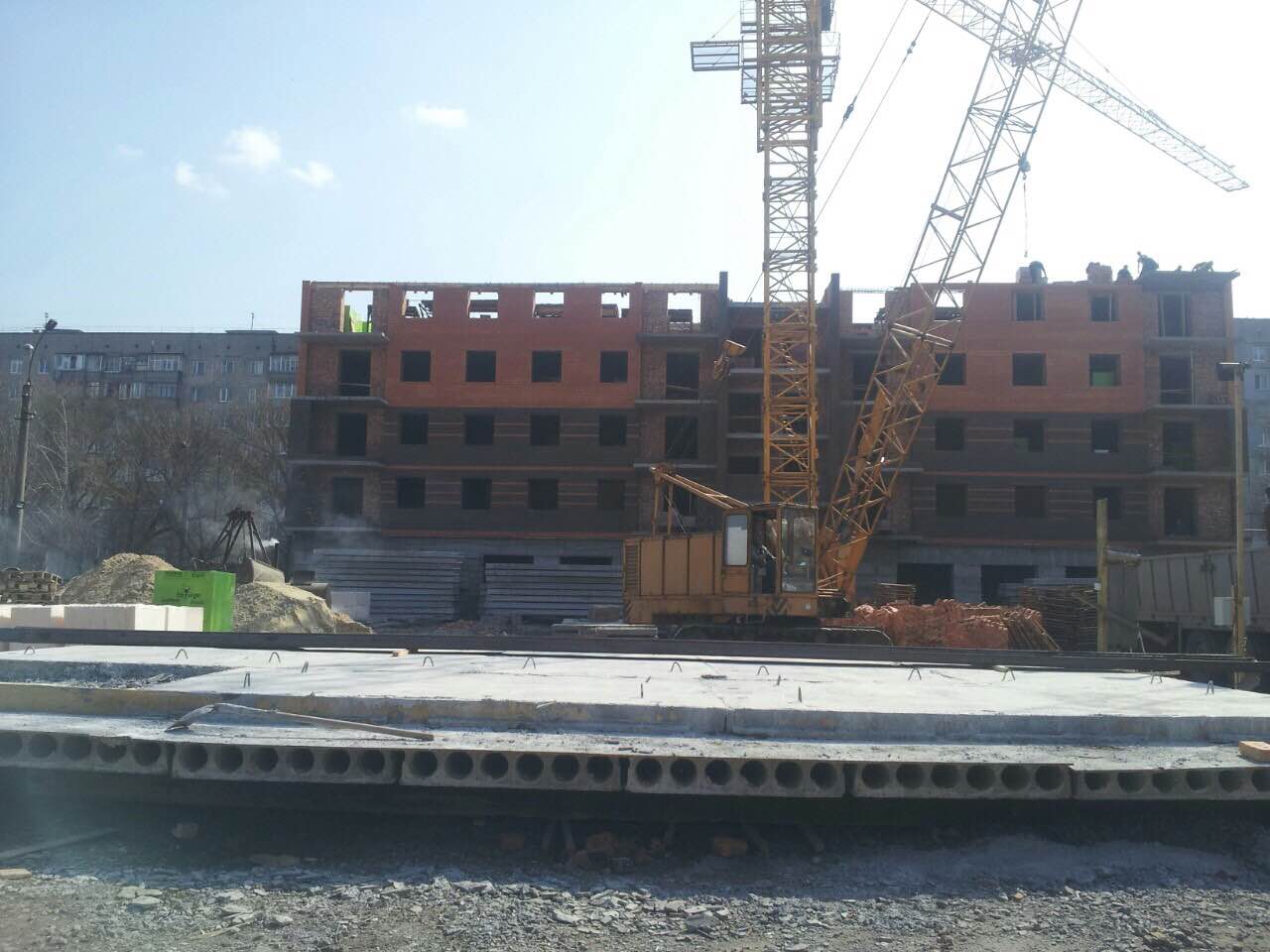 З кожним днем будинок стає все вищим, вже розпочалося плитне перекриття четвертого житлового поверху. Йдуть підготовчі роботи на кладку міжкімнатних та міжквартирних перестінків третього поверху. Також перенесли паркан готуємо ділянку під комерцію. А ось так виглядає наша ліфтова шахта.