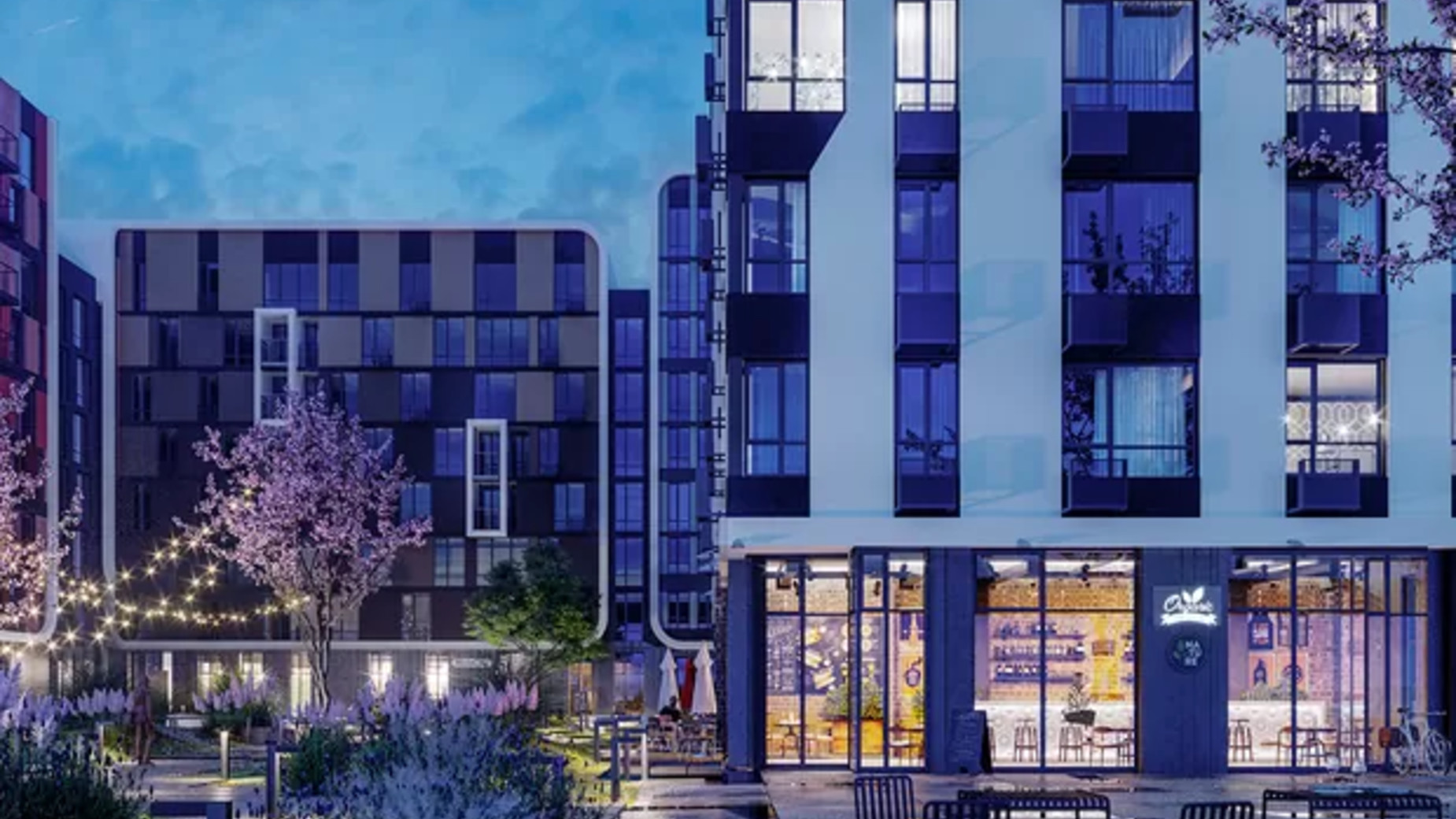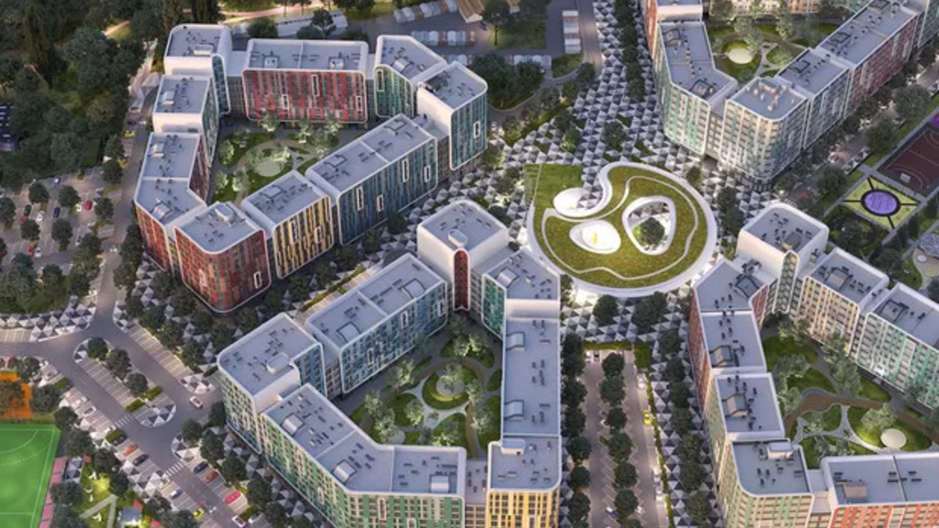 розвинена внутрішня інфраструктура – продумана для дорослих і дітей територія двору та необхідні об'єкти на перших рівнях будівель.