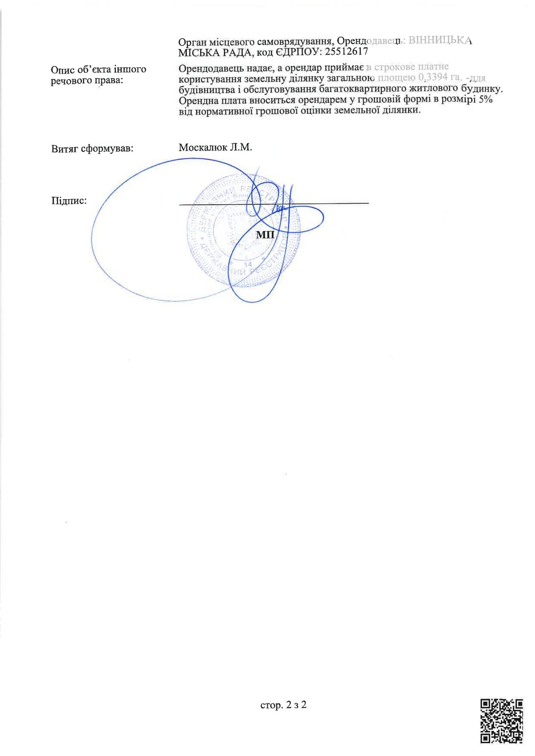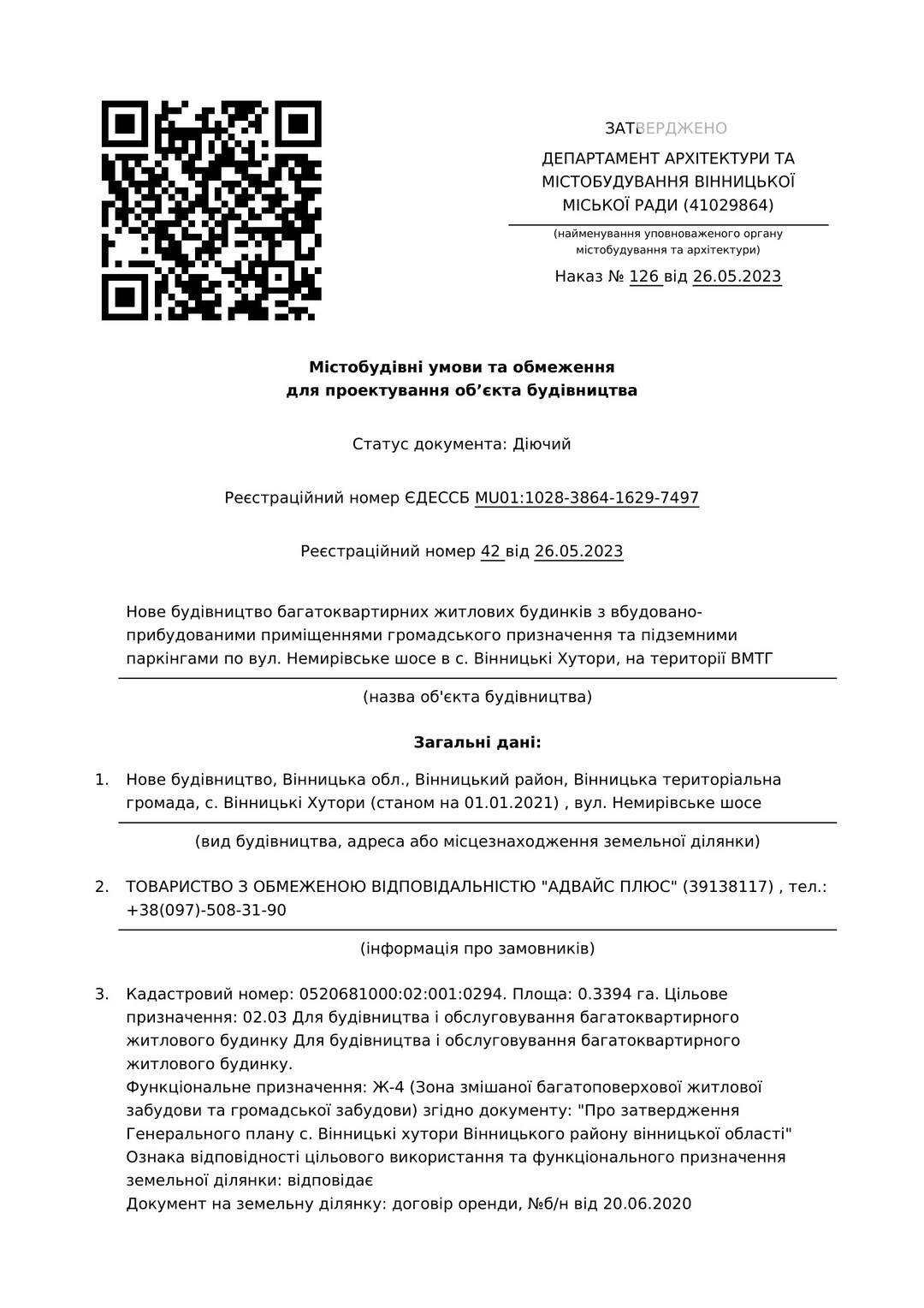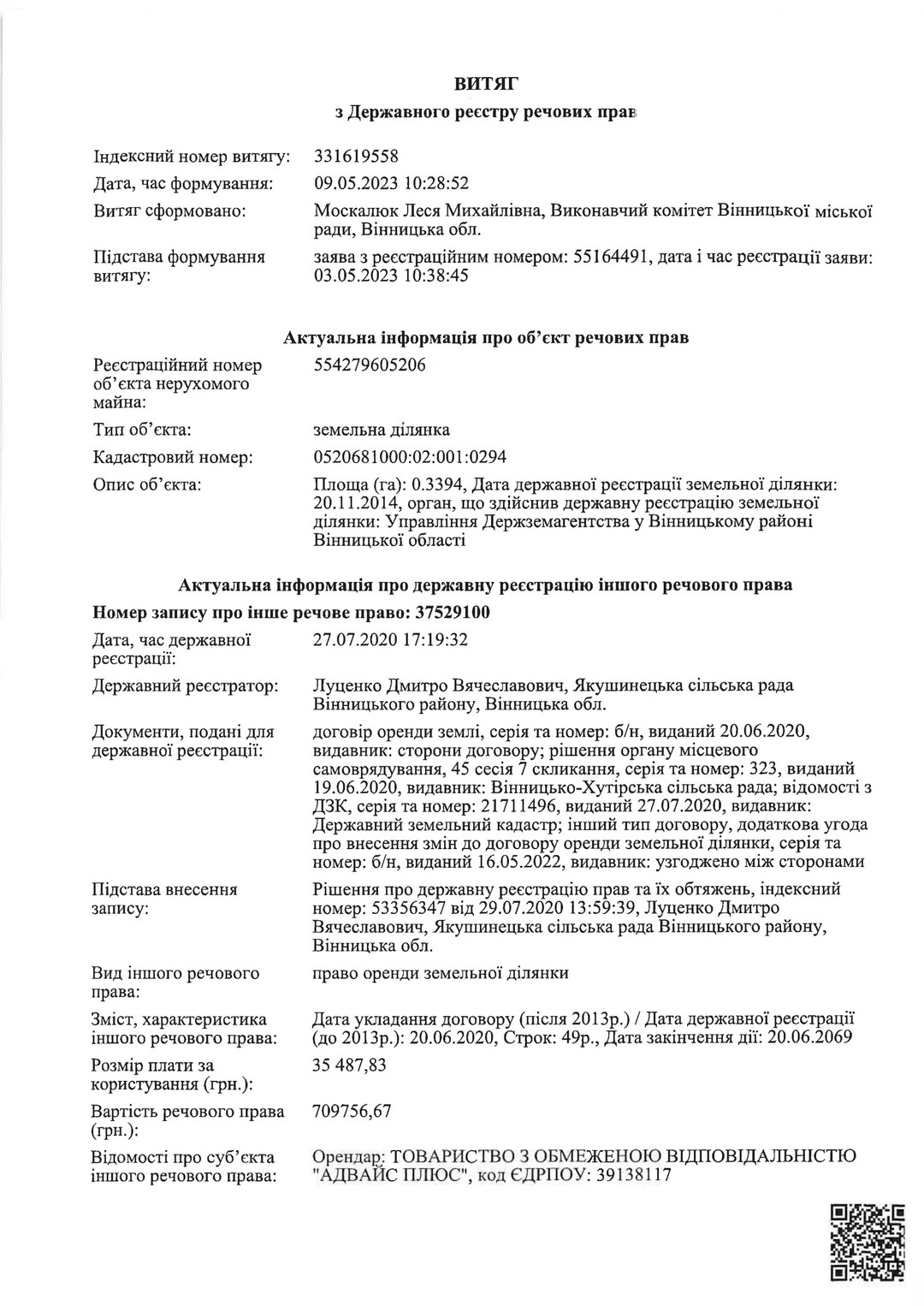 Кадастровий номер 0520681000:02:001:0294 |