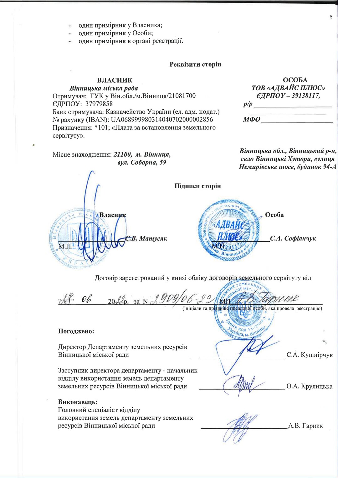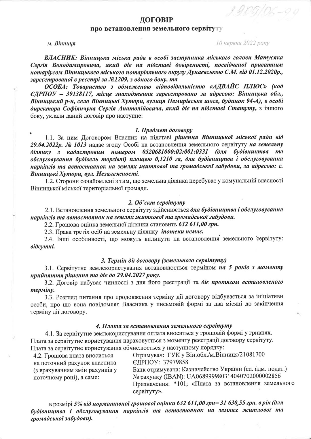 Документи на землю Договір про встановлення земельного сервітуту 2909/06-99 |