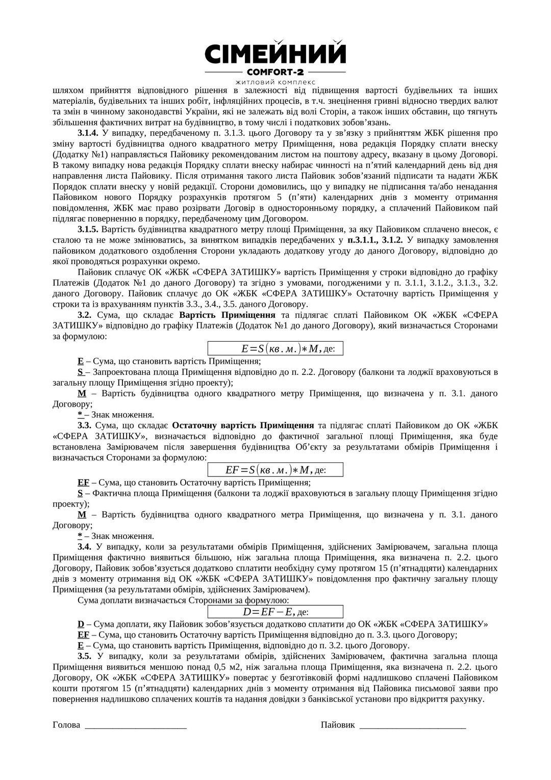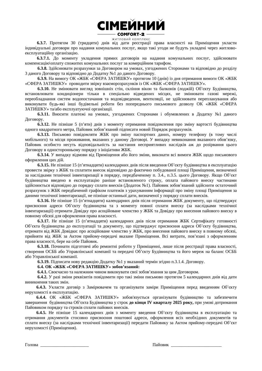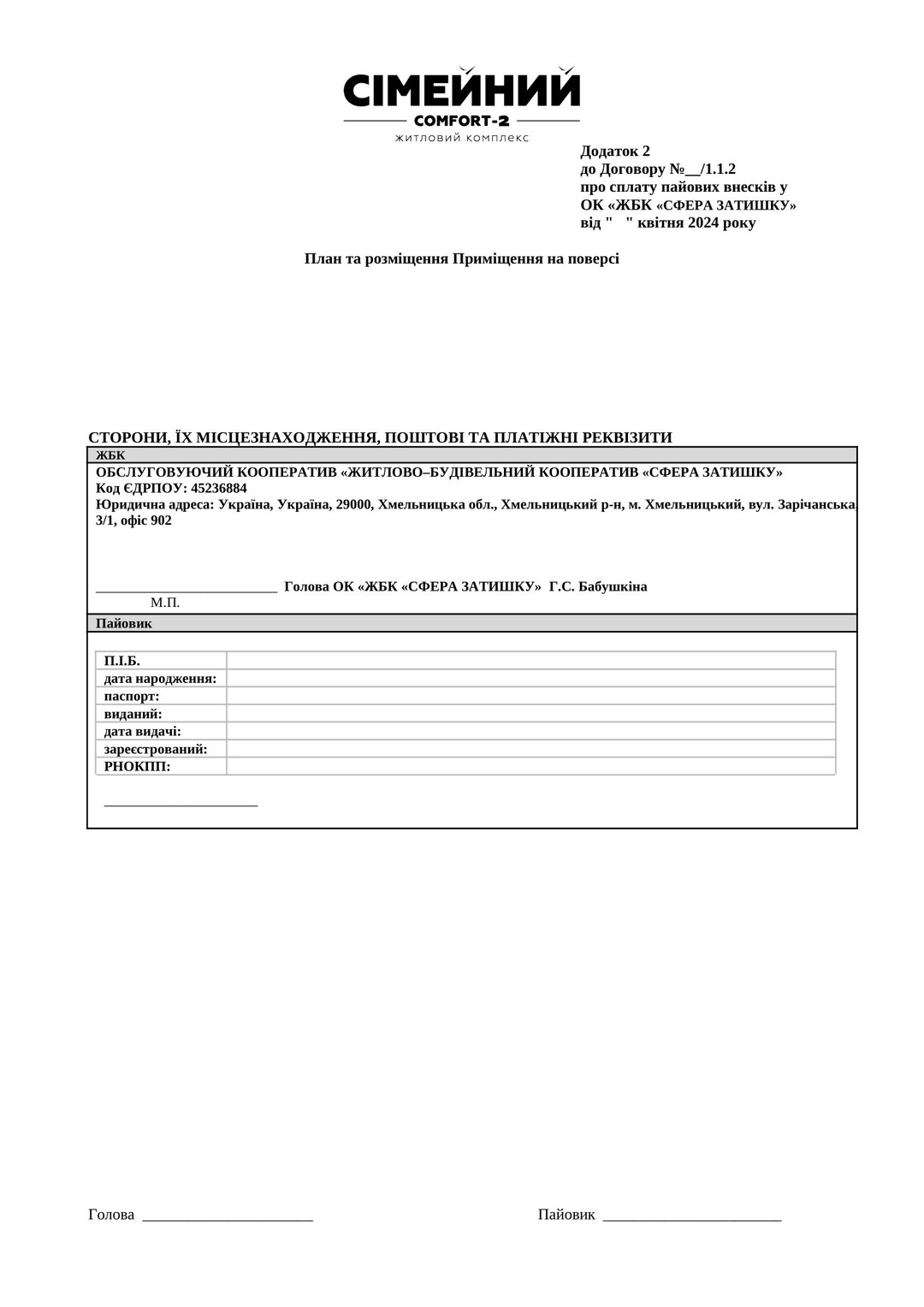 Інші документи Договір про сплату пайових внесків |