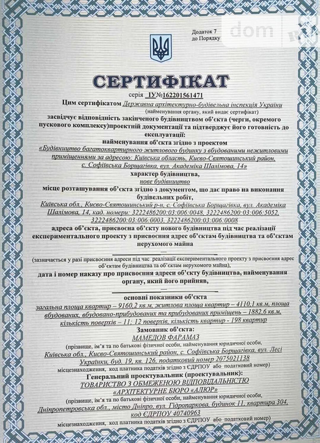 Право на виконання будівельних робіт Документ на право проведення будівельних робіт (вул. Шалімова, 61) |
