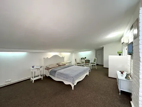 Особливість апартаментів затишна атмосфера та унікальне планування з похилою стелею, що створює відчуття приватності та спокою.