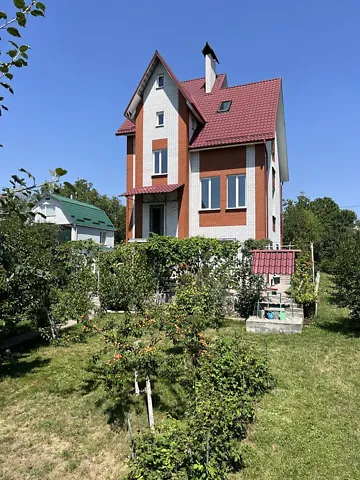 246 кВ. М. 8 сот. землі біля будинку і поруч ще 8 сот. В будинку. Дві кімнати і третю кімнату переробили в гардероб, гостинна з каміном, кухня. Санвузол на першому поверсі, другому в сауні і на вулиці обложений плиткою. Працююча сауна з літньою кухнею. Гараж на дві машини До зупинки катіону 10-20 хв пішки , якщо 50 маршрутка, то 3 хв. 180000+2% переоформлення