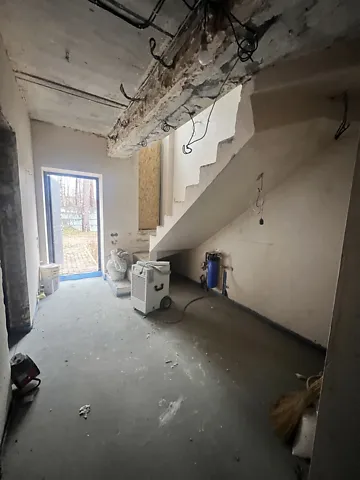 Таунхаус площею 95 м2 на земельні ділянці 1, 4 сотки. Зроблена чистова штукатурка та стяжка, розведена сантехніка, електрика, інсталяція, радіатори, тепла підлога - перший поверх та санвузли.