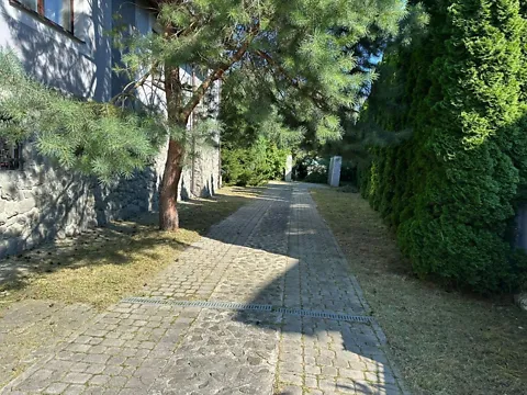 Територію газону стриже автономний робот. Території вздовж парканів обсаджена 4м туями, приватність особисто простору надійна. У саду кілька десятків фруктових дерев. На території є садовий будинок на 12 кв м, збудований за щитовокаркасною системою.