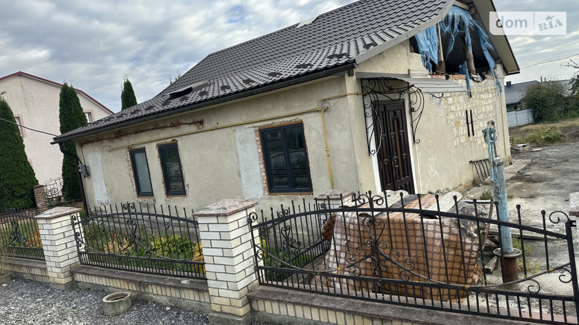 Будинок огороджений парканом, є подвіря.