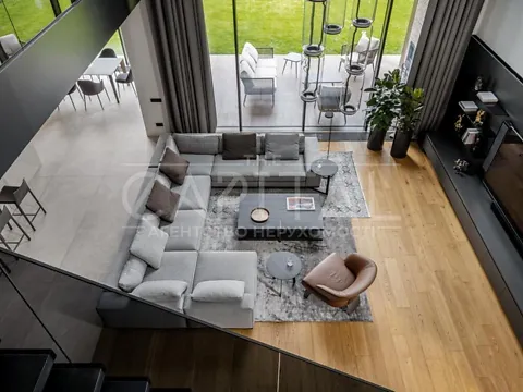 Це двоповерховий твір мистецтва загальною площею 444 кв.м. Будинок з двома терасами, з каміном і дизайн інтер'єру в сучасному стилі, тільки з натуральних матеріалів. Панорамні вікна і безліч сміливих рішень в інтер'єрі. Кухня з гігантським островом з керамограніту підрізаним під кутом 45 градусів. Меблі з захисним покриттям відбитків пальців. Техніка Miele, тільки посудомийна машина Bosch.