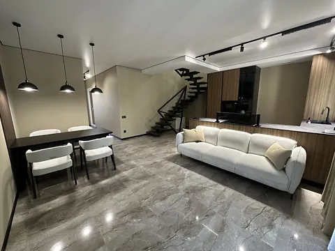 Два повноцінні поверхи , висота 2.75 і мансарда. Простора кухня-студіо, три кімнати, два санвузли, гараж.