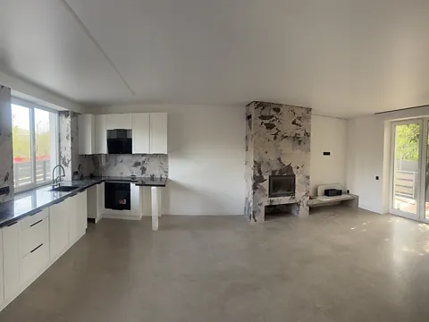 Площа 100 метрів, складається з кухні вітальні, санвузла та котельні на першому поверсі.