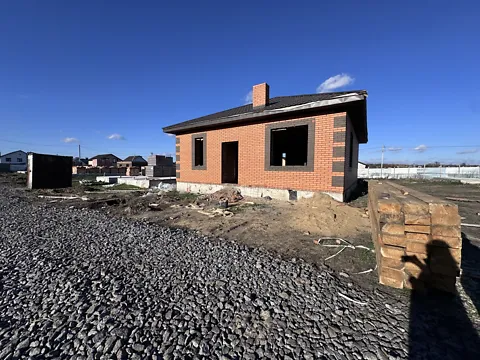 Будинок у продажі з чорновими роботами. З комунікацій: газ, світло, скважина та вигрібна яма.